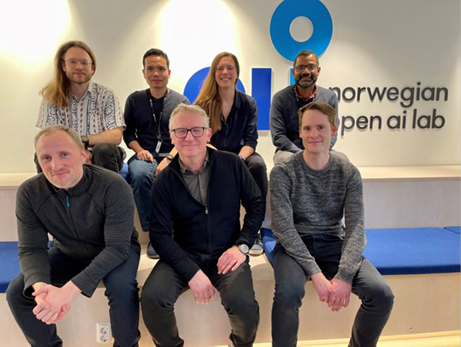 The Norwegian Open AI team that worked on the AI algorithm. Back row from left: Felix Temple, Kimji Pellano, Inga Strümke, Heri Ramampiaro. Front row from left: Espen Ihlen, Lars Adde, Daniel Groos. Photo: NTNU