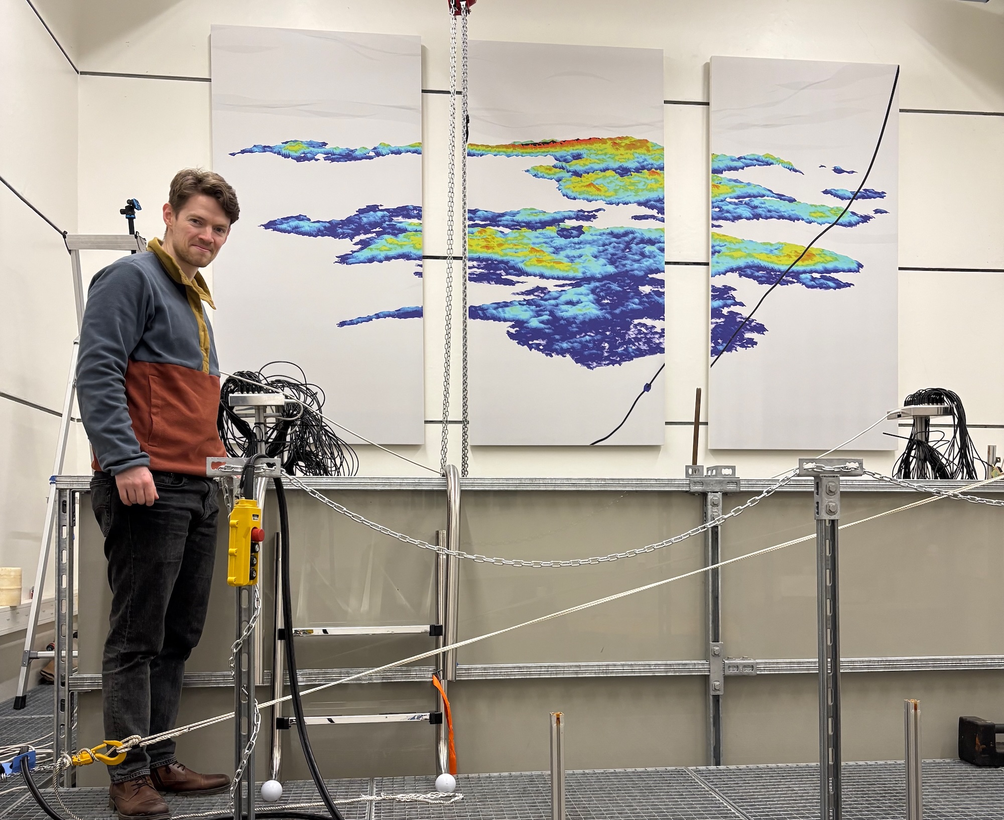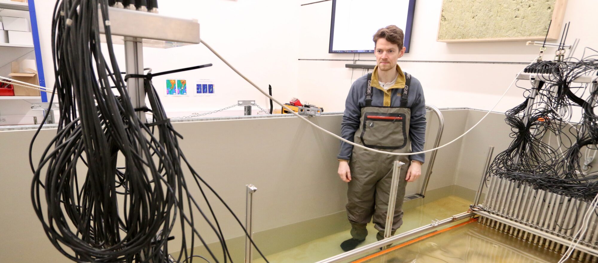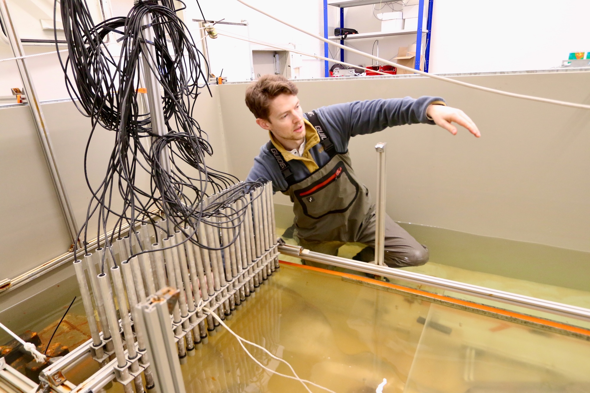 Kasper Hunnestad, a CGF postdoc, is responsible for the lab. He’s spent hours and hours setting up the tank with its heavy plastic model.