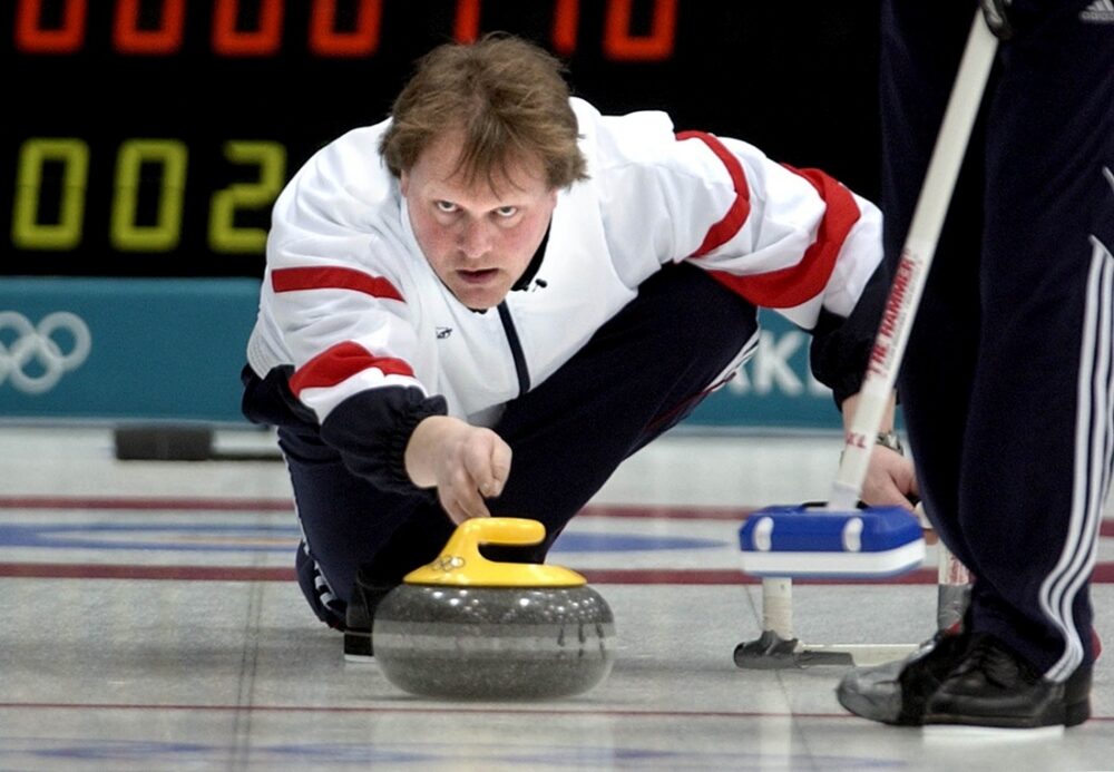 Pål Trulsen of Norway in action. Trulsen and his teammates Torger Nergaard, Bent Ånund Ramsfjell, Flemming Davanger and Lars Vågberg unexpectedly defeated the Canadians and won gold in curling during the 2002 Olympics in Salt Lake City. Photo: Claudio Bresciana, SCANPIX, NTB