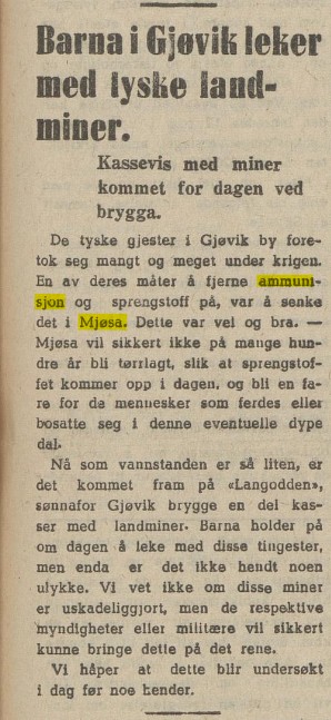 Quite soon after the war, local newspapers reported on children playing with German landmines on the beaches in Gjøvik, and fishermen finding ammunition in their nets.