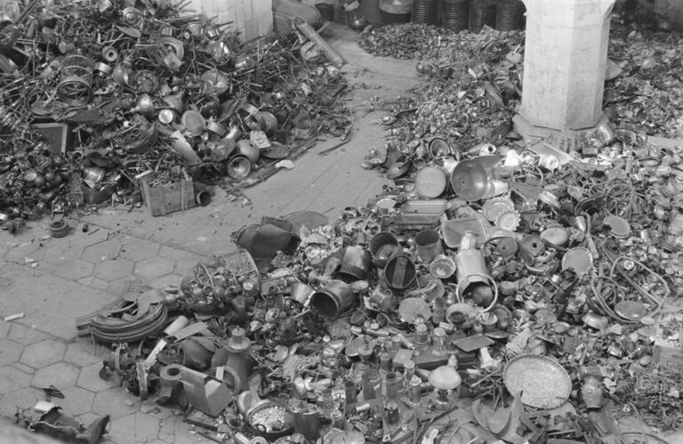 In the 1930s, Hermann Göring was tasked with securing the industrial side of rearmament. On 27 March 1940, he called for donations of metal. The Church of St. Ulrich in Regensburg was one of many collection sites. This photograph was taken on 9 April 1940. Systematic collection of scrap metal also took place in Norway. Photo: Stadt Regensburg, Bilddokumentation, Christoph Lang
