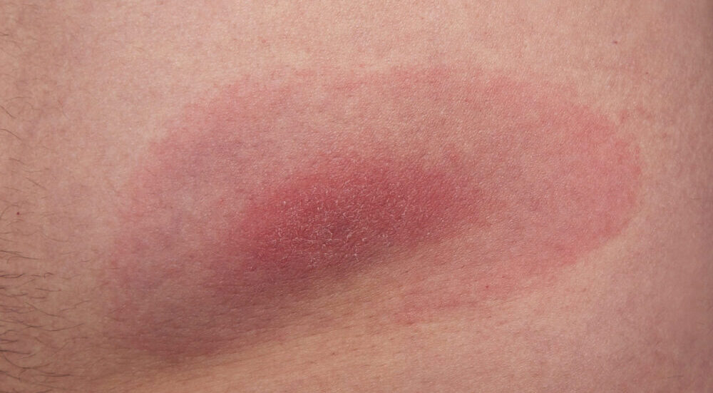 The disease can start with a rash that eventually spreads on the skin in a ring-shaped pattern. In some people, the disease can develop into facial paralysis, meningitis or other complications.