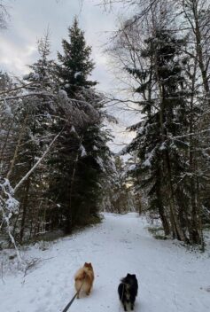A walk in the forest is good for many things, in addition to giving our furry friends a little fresh air. Photo: Steinar Brandslet, NTNU